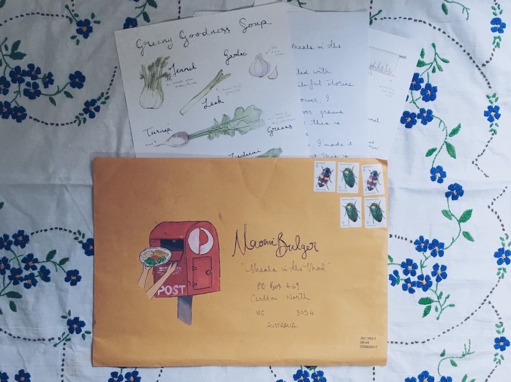 Ahhh, that project. Meals in the Mail remains one of the favourite projects I’ve ever run. Here’s where it’s at: at the start, I promised to turn all the recipes into a book, but I received more than 250 letters (after expecting 20-50). To share the recipes, mail-art and stories in this way would make for a book that was around 750 pages long, which would be as unwieldy and impractical as it would be impossibly expensive, so I had to rethink.