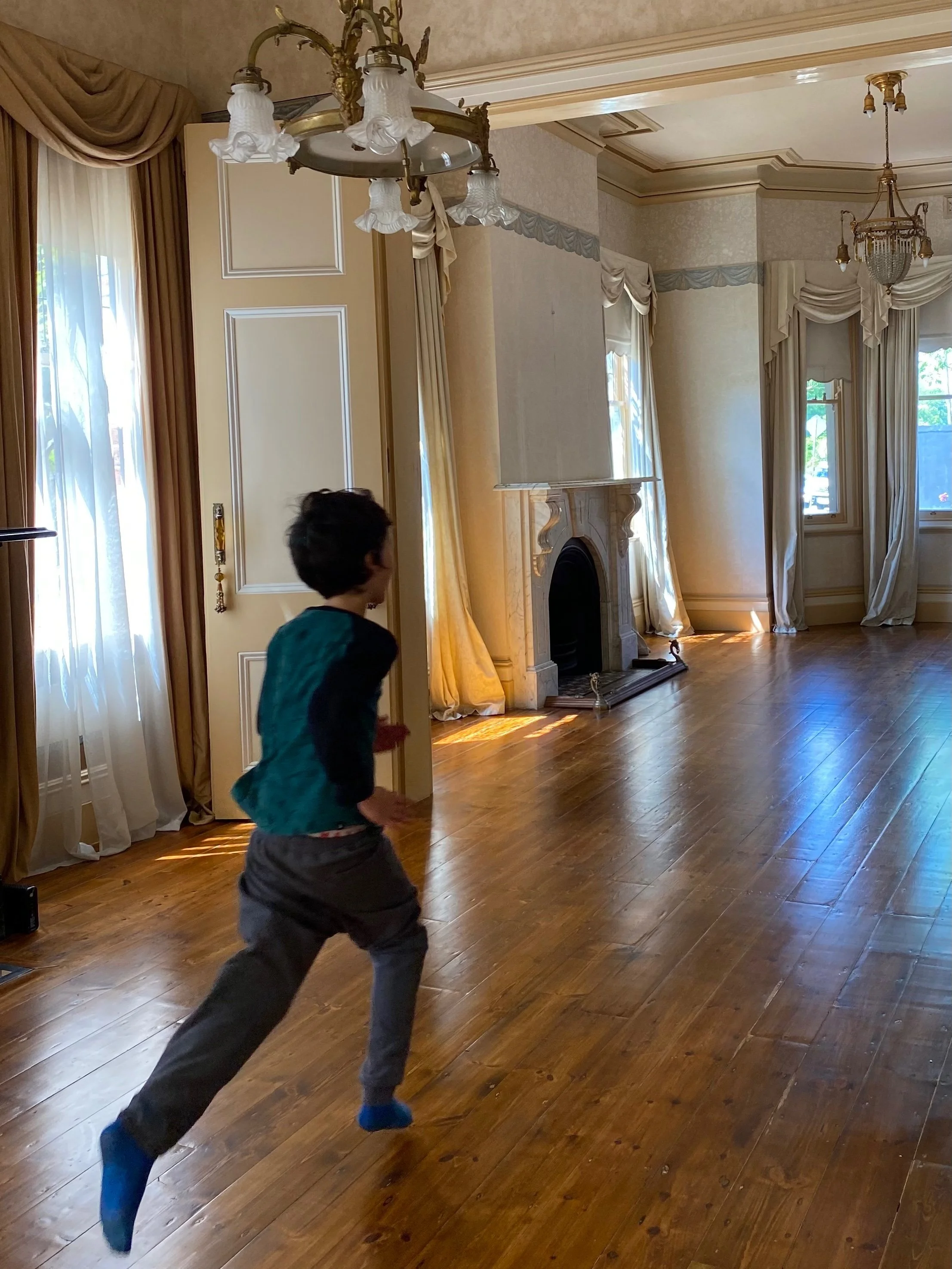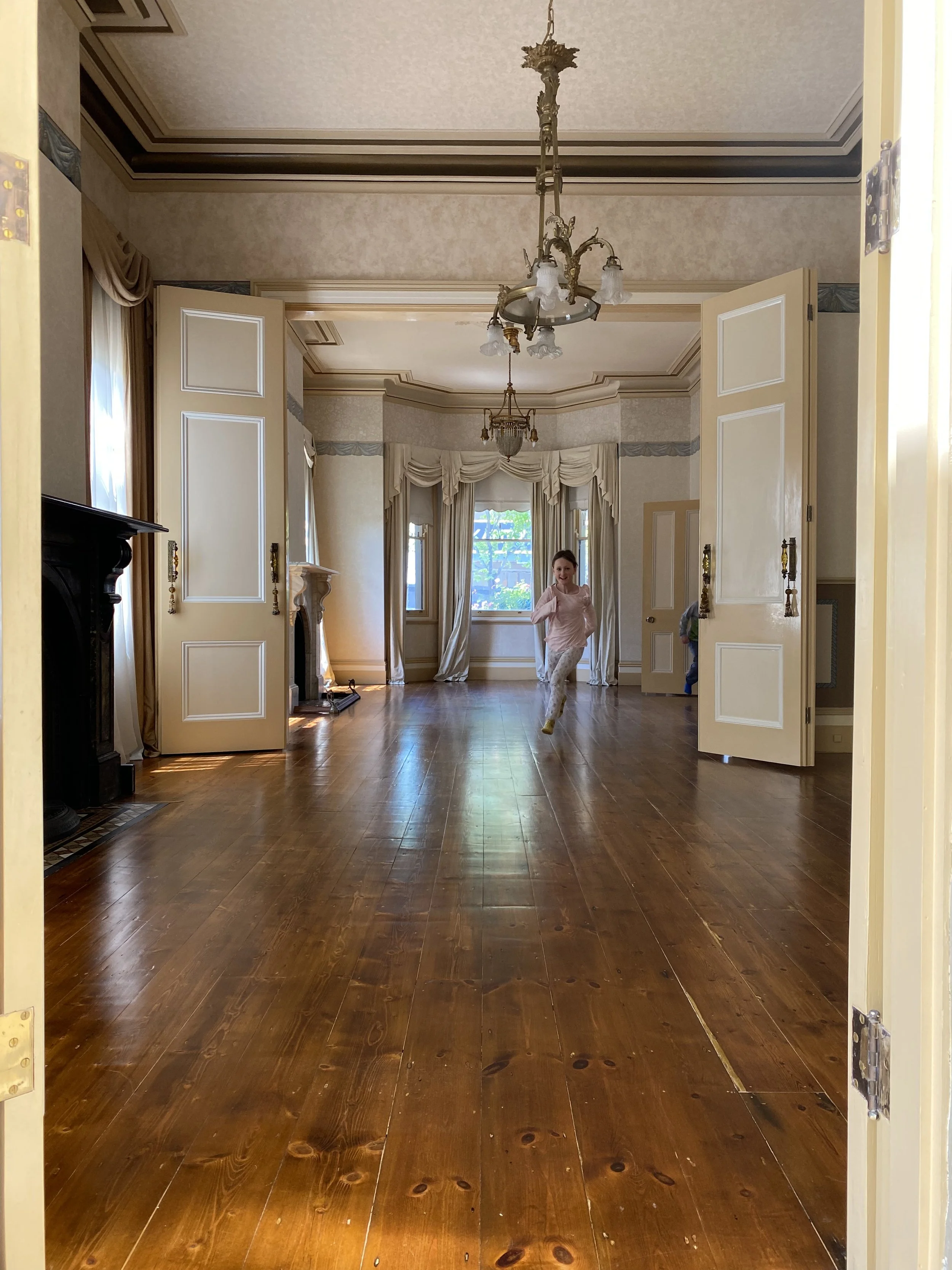 The children raced through the house, from one end to the other. They ran, and they ran, and they ran. Up and down steep stairs and along the higgeldy-piggeldy corridor (a funny old corridor, one that goes up, down, up again, and around). Down the long hallway with the tessellated tiles and the grape-vine chandelier. In and out of the oddly-built kitchen with the Z-shaped island bench and dark, towering, floor-to-ceiling cupboards and drawers, all made out of heavy, timber filing cabinets. And through the high-ceilinged, fussily-wallpapered reception rooms, where wedding-cake curtains draped and shadowed the old windows (those almost-ancient curtains, vinyl-backed and crumbling with age, dust and sunlight).